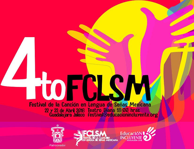 El Cuarto Festival Nacional de la Canción en Lengua de Señas Mexicana tendrá lugar los días 22 y 23 de Abril del año 2016 a partir de las 6:00 pm, en el Centro Cultural Teatro Diana, ubicado en: